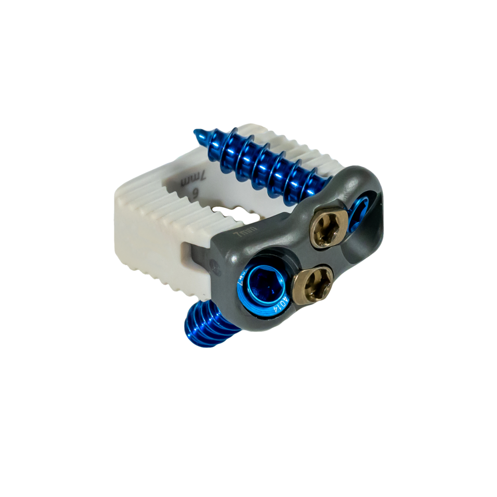 The F3D-C2 Stand-alone Cervical System is a cervical interbody fusion system comprised of a spacer with two bone screws and/or Fusation™ anchors secured by a locking mechanism integrated within the cage. The system features versatile spacer fixation options, innovative instruments that streamline implantation at the most challenging levels, and the biocompatible benefits of Mimetic Metal®.